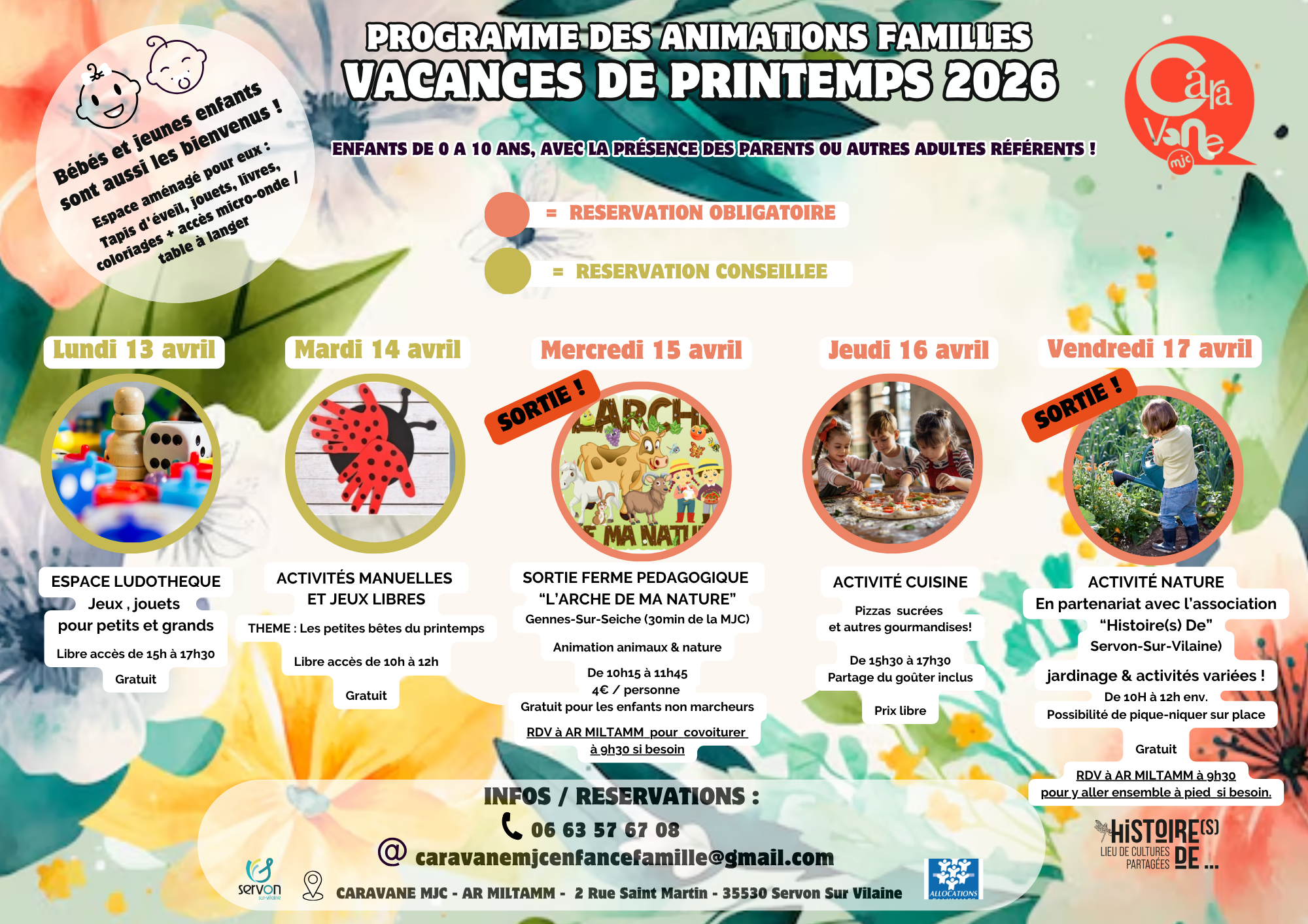 Réservation obligatoire pour les sorties et réservation vivement conseillée pour les autres activités, auprès d’Audrey, animatrice Enfance-Famille de la MJC : caravanemjcenfancefamille@gmail.com – 06 23 08 08 00