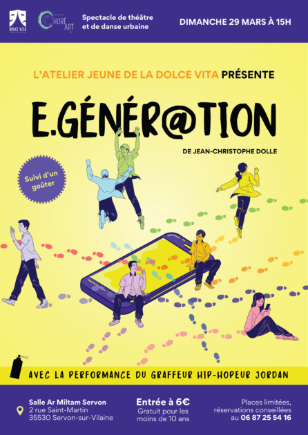 L’atelier jeune de la compagnie de théâtre Dolce Vita présente E.Génér@tion, de Jean-Christophe Dolle, avec la performance du grapheur hip-hopeur Jordan.